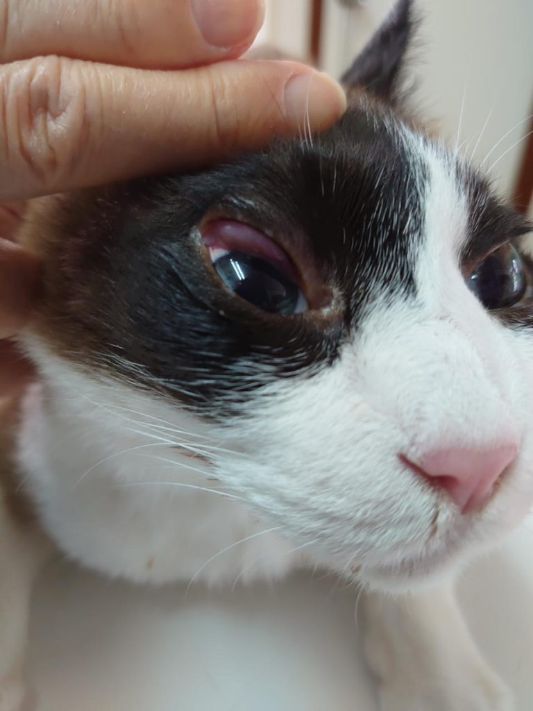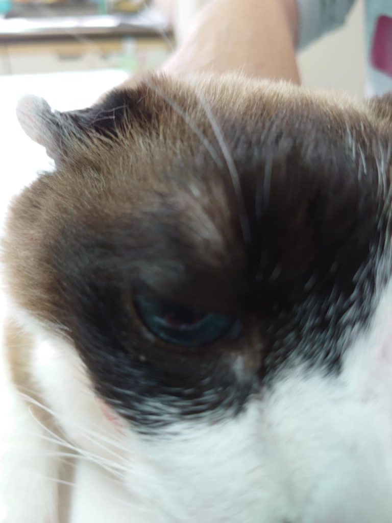 右目の上が腫れている!とのことで来院しました。